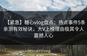 【紧急】糖心vlog盘点:热点事件5条亲测有效秘诀,大V上榜理由极其令人震撼人心