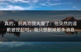 真的,别再劝我大度了:他突然的道歉被提起时,我只想删掉那条消息 引子:当“宽容”变成一把双刃剑...