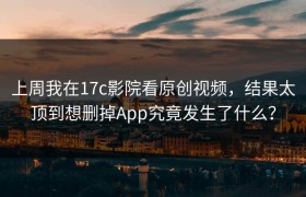 上周我在17c影院看原创视频,结果太顶到想删掉App,究竟发生了什么? 上周的晚上,我像往常一样沉迷...