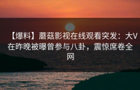 惊天爆料:大V卷入八卦风波,蘑菇影视引爆全网热议 昨晚,一则爆料悄然出现在社交媒体平台,却迅速掀起轩...